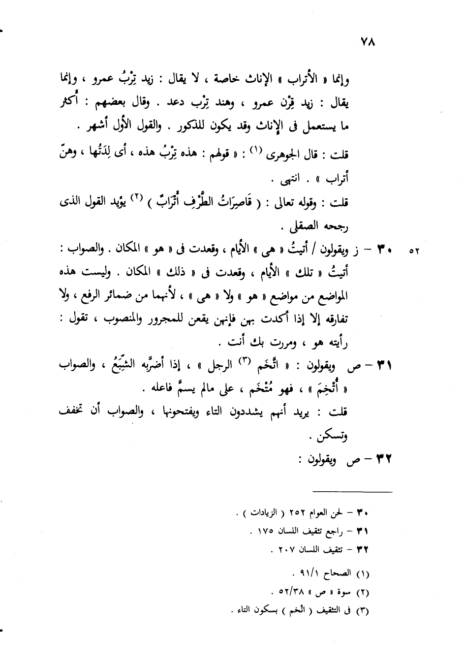 (ز) ويقولون: أفْرِنَة لجمع الفُرْن. والصواب: أفْران. فأما أفْعِلَة فليس من جمع فُعْل.