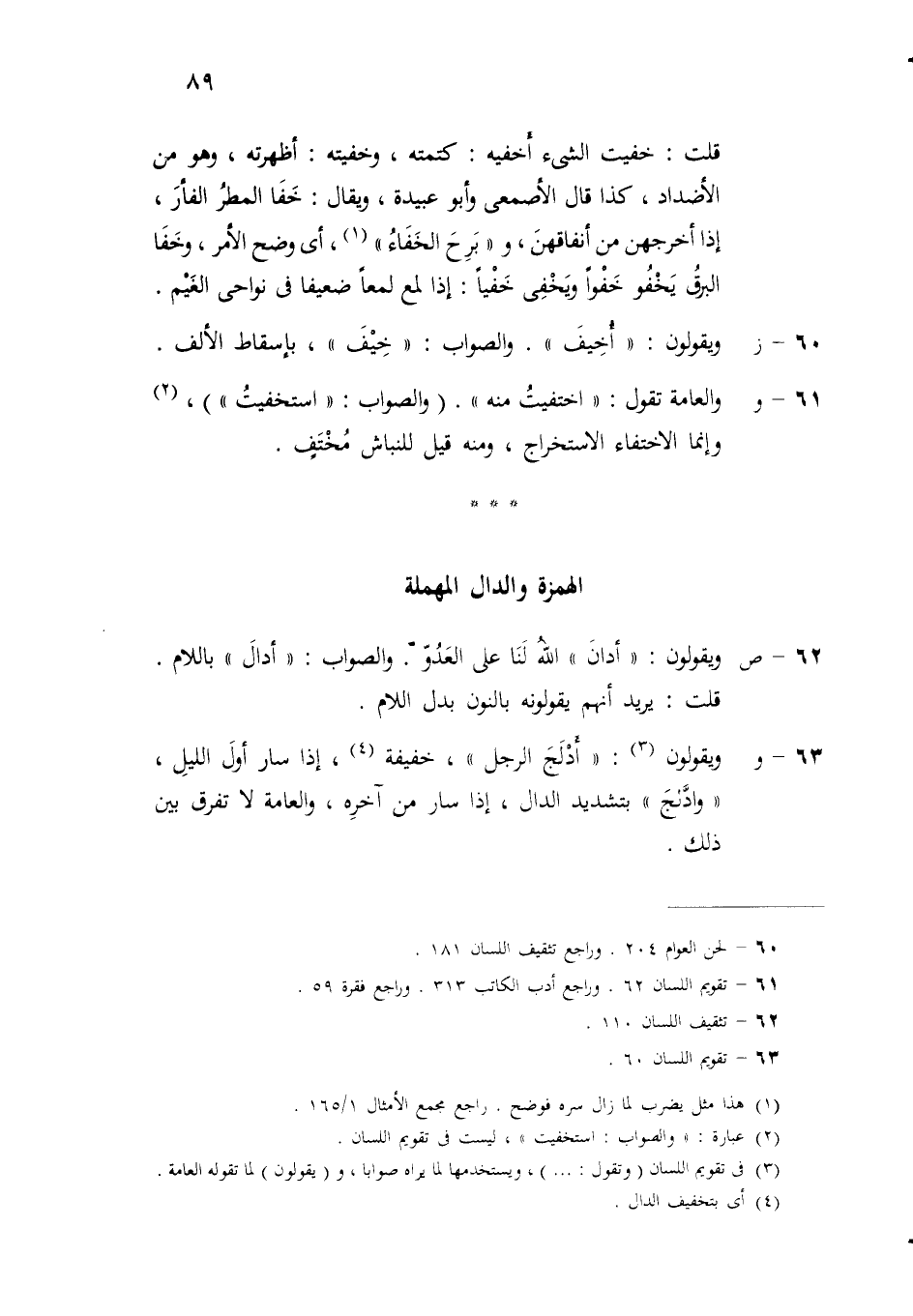 (ح) ويقولون: انْضاف الشيءُ إليه، وانْفَسَدَ الأمرُ عليه. ووجه القول أُضيفَ إليه، وفسَدَ عليه، والعلة في امتناع انْفَعَل أن مَبْنَى فِعْل المُطاوعة المصوغ على انْفَعَل أن يأتي مطاوع الثلاثية المتعدية كقولك: سكبته فانسكب وجذبته فانجذب، وضاف وفسد إذا عُدِّيا بهمزة النقل صارا رباعيين.