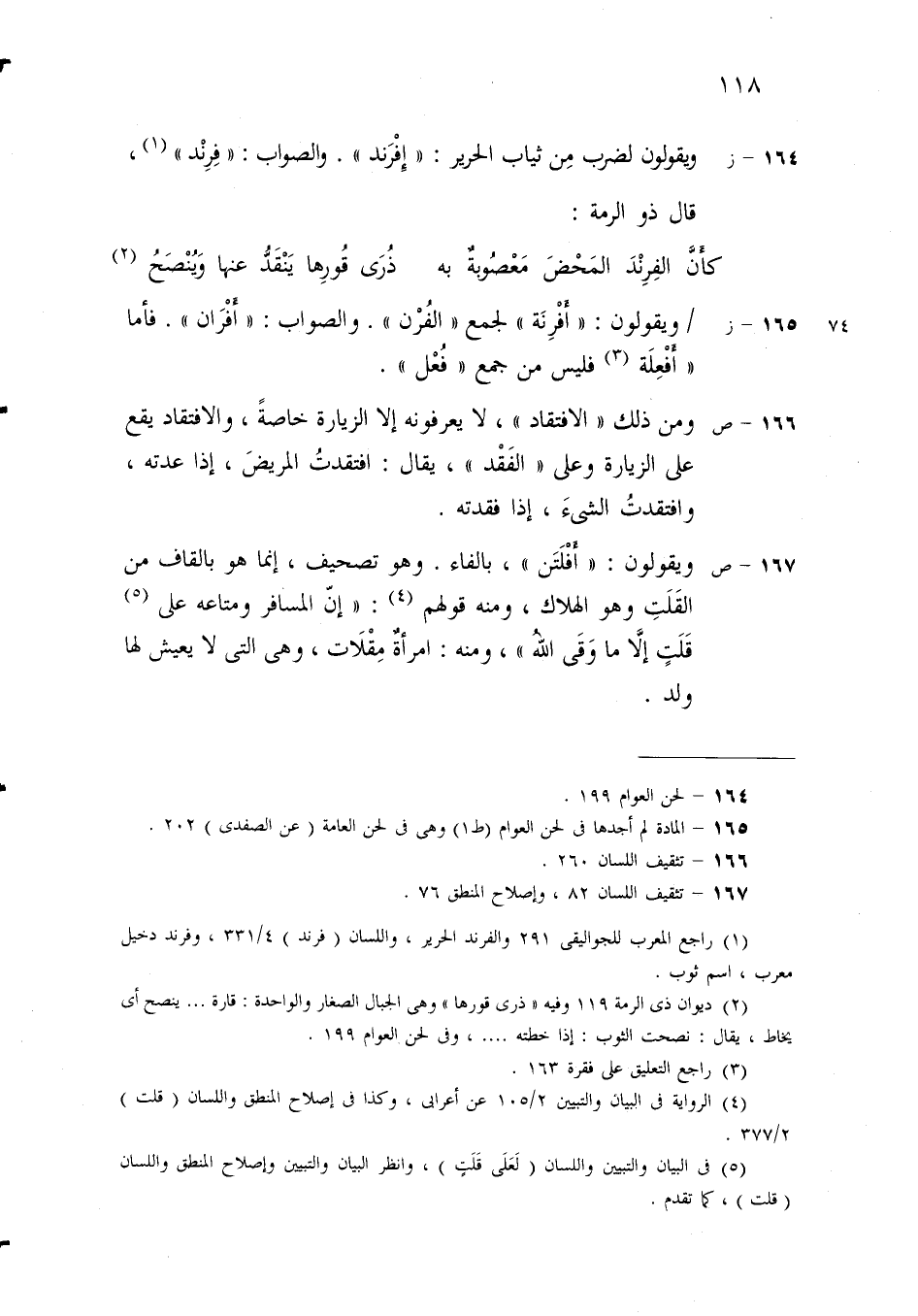 (ز) ويقولون: بَزيم للحديدة التي تكون في طرَف حزام السرج، يسرج بها، وقد تكون في طرف المنطقة ولها لسان يدخل في الطرف الآخر من الحزام والمنطقة. والصواب: إبزيم على مثال إفعيل، وفيه لغة أخرى يقال: إبزام والجمع أبازيم، ويقال أيضاً: إبزين ويجمع على أبازين، ويقال للإبزيم أيضاً: زِرْفن وزُرْفُن، وفي الحديث: أنّ درعَ رسول الله صلى الله عليه وسلم كان ذات زَرافن، إذا عُلِّقت بزرافنها شمّرت وإذا أُرسِلَت مستِ الأرض.
