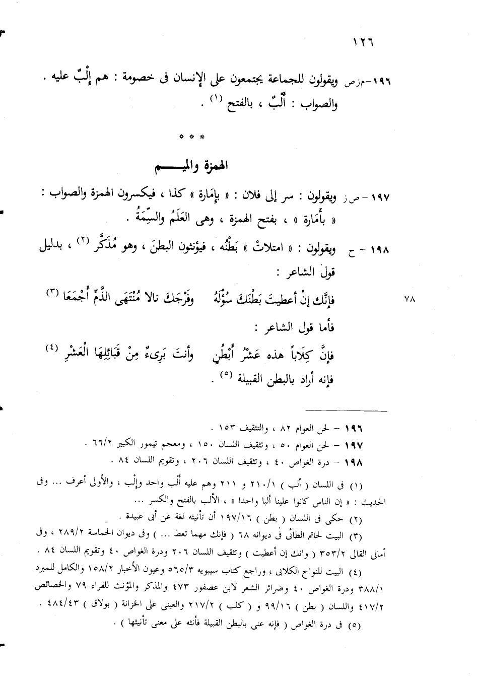 (س ك) ألْقى يوماً عليٌ الأحمر على الأمين ولَدِ الرشيد فقال: تقول العرب: حمراءة وبيضاءة. فقال الكسائي: ما سمعتُ هذا، قال الأحمر: بلى واللهِ سعتُ أعرابياً ينشد، يقال له مزيد: