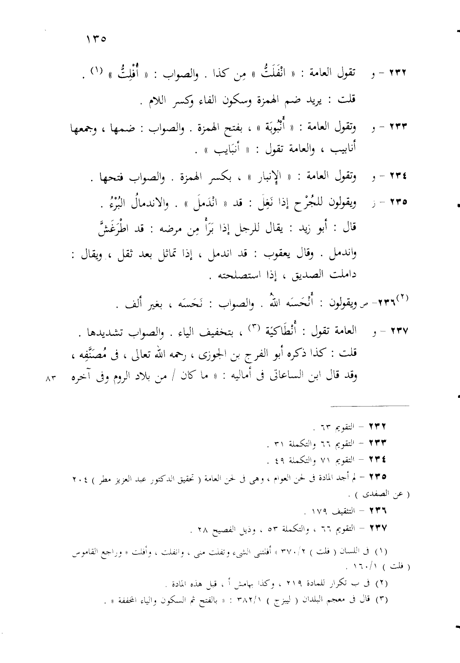 (ح) ويقولون للمتوسط الصفة: بيْنَ البَيْنَيْن. والصواب أن يقال: بيْنَ بَيْن، كما قال عبيد بن الأبْرَص: