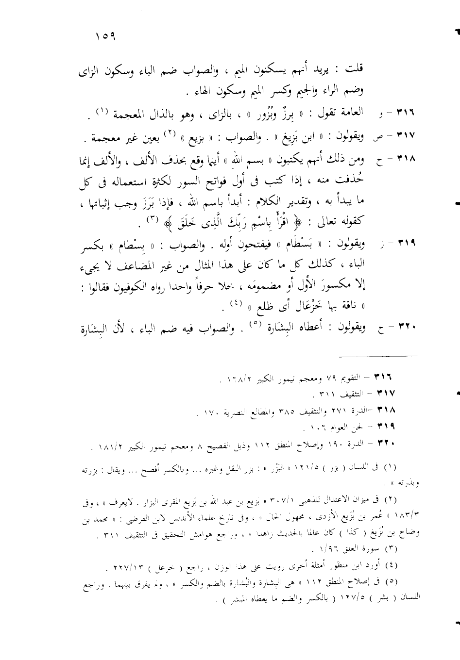 (ح) ويقولون: ثلاثة شهور، وسبعة بحور. والاختيار أن يقال ثلاثة أشهر وسبعة أبحر، كما جاء في القرآن: (فَسيحُوا في الأرضِ أربَعَةَ أشْهُرٍ) ، وقوله: (مِن بعْدِهِ سبعةُ أبْحُرٍ) ، وذلك لأن العدد من الثلاثة الى العشرة وضْعُ القِلّةِ، وكانت إضافته الى مثال الجمع القليل المشاكل له أليقَ، وأمثلة الجمع القليل أربعة: أفْعال وأفْعُل، وأفْعِلَة وفِعْلَة.