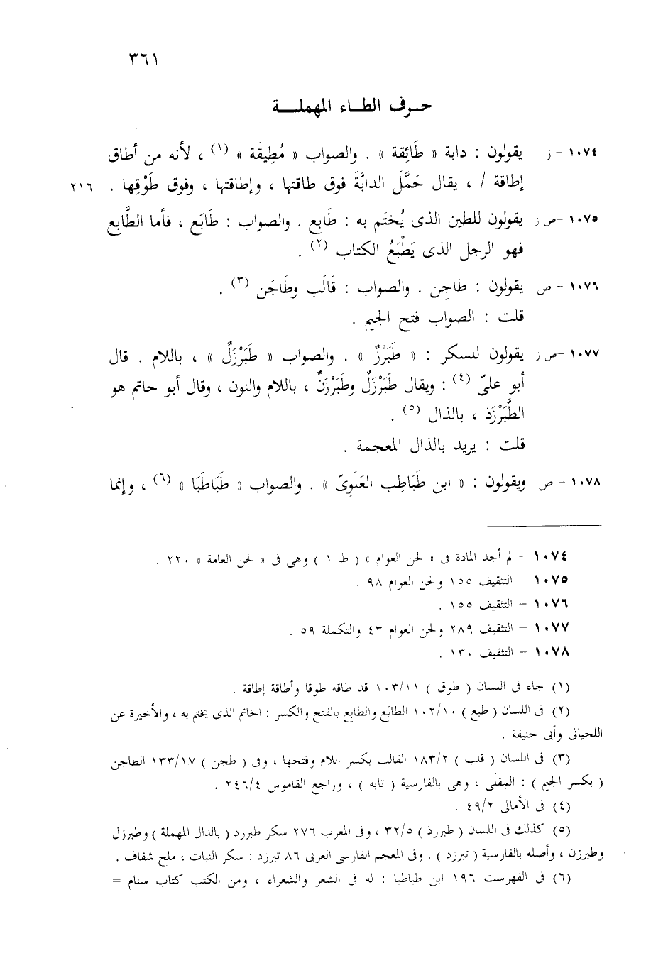(ز) ويقولون لضرب من المسامير: فَتْلِيّة. والصواب فِتْرِيّة، والفِتْرُ ما بين طرَفِ الإبهام والسّبّابة.