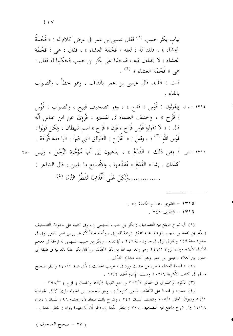 (ز) ويقولون لبعض الأصماغ المجلوبة: لَوْبان. والصواب لُبان، وحدثنا أبو عليّ قال: ثنا أبو بكر بن دريد قال: روى بعضهم بيت امرئ القيس يصف فرسه: