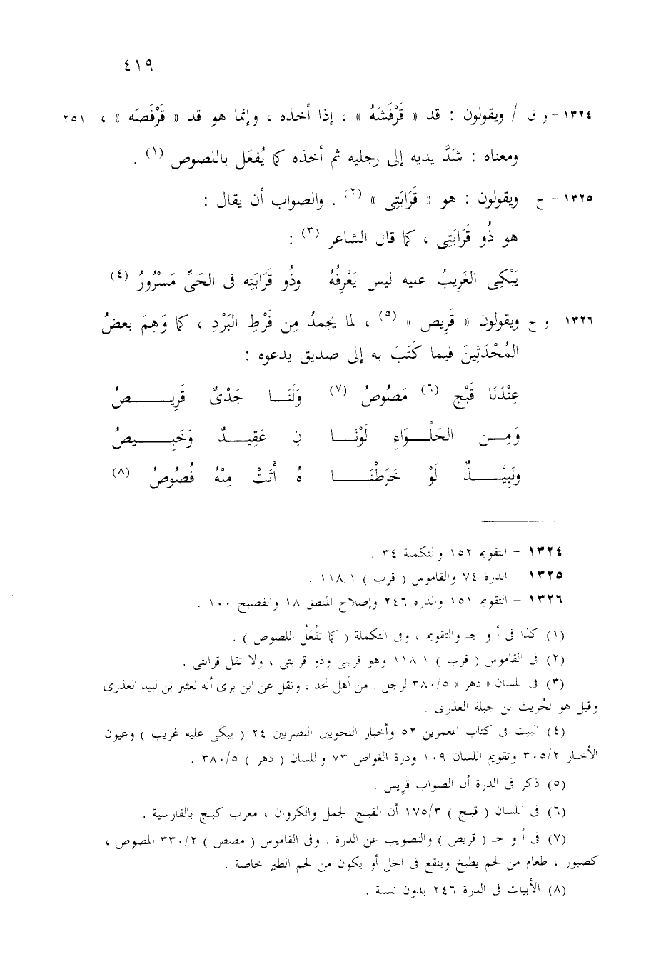 (ح) يقولون: بلّغك اللهُ المأثور. يعنون به ما يؤثِره المدعوّ له. وليس هو في معنى المؤثَر، ولا هو مشتق منه، لأن المأثور ما يأثِرهُ اللسان، لا ما يؤثِره الإنسان، وهو مشتق من