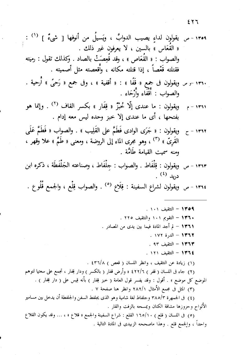 (وق ح) ويقولون: صبي مُجَدَّرٌ. والصواب مَجْدور، لأنه داء يصيب الإنسان مرّة في عمره من غير أن يتكرر فيلزم أن يُبنى المثالُ منه على مفعول، كما يقال مقتول، وإنما يوضع مُفَعَّل للتكرير فيقال لمن يُجرَح جُرحاً على جُرح: مُجَرَّح، واشتقاقه من الجَدْرِ وهو الكَدْم في عُنُق الحمار.