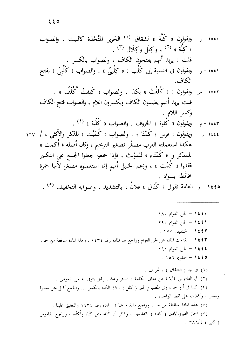 (ز) ويقولون للرمح القصير: مَطْرَد. والصواب مِطْرَد.