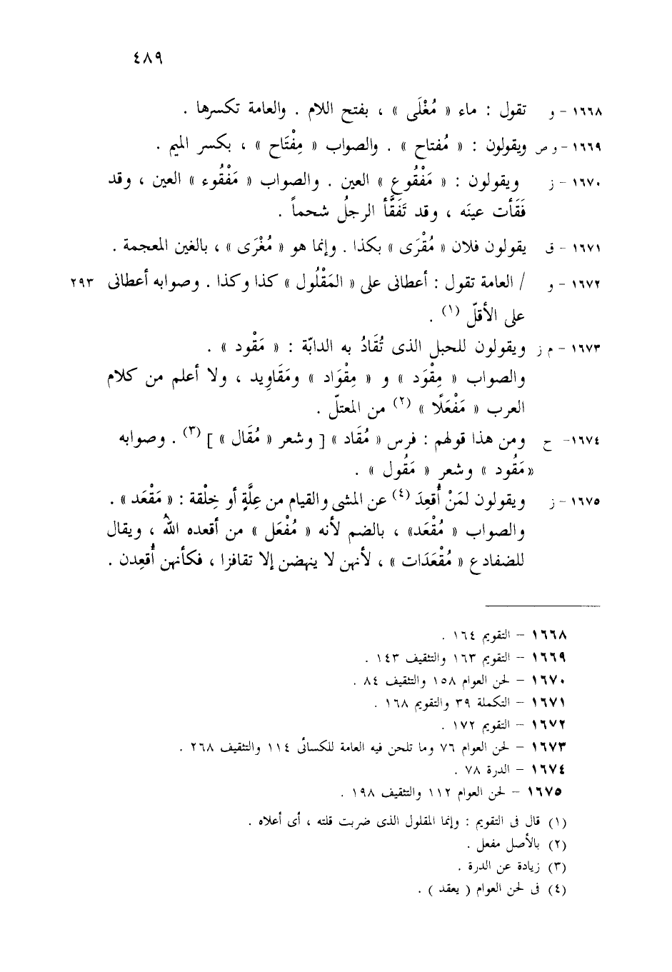 (ز) ويقولون لبيت الطعام: هُرِيّ. والصواب هُرْيٌ، والجمع أهْراء.