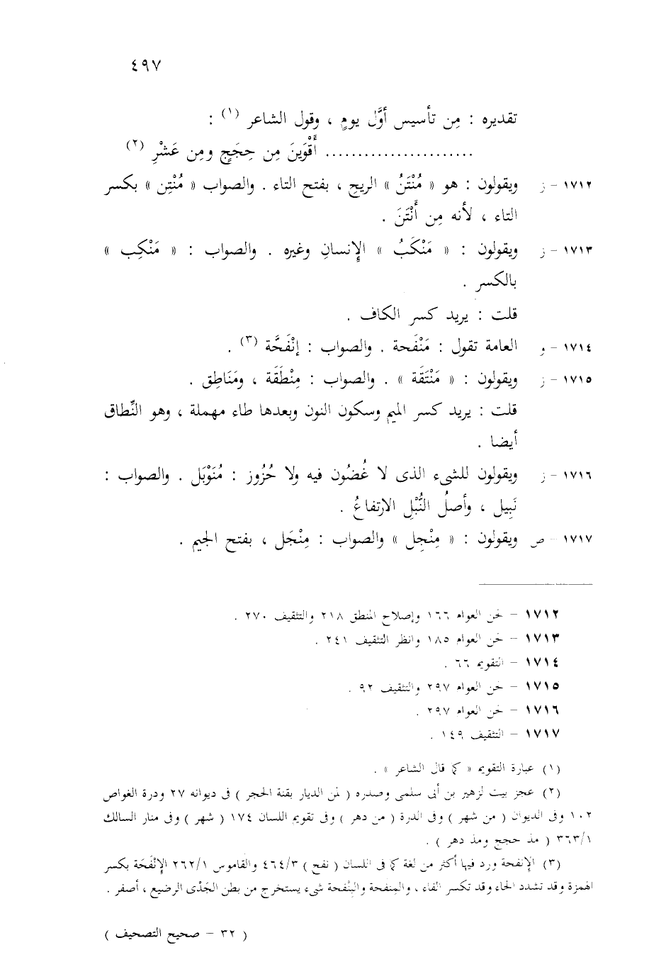والصواب: جاءوا أُحادَ، وثُناءَ، وثُلاث ورُباع، أو يقال: جاءوا مَوْحَدَ، ومثْنَى، ومَثلَث ومَرْبَع، لأن العرب عدلتْ بهذه الألفاظ الى هذه الصيغ لتستغني بها عن تكرار الاسم، ويدلّ معناها على ما يدلّ مجموع الاسمين عليه، ولهذا امتنع أن يقال للواحد: هذا أُحاد، وللاثنين: هما مَثْنى.