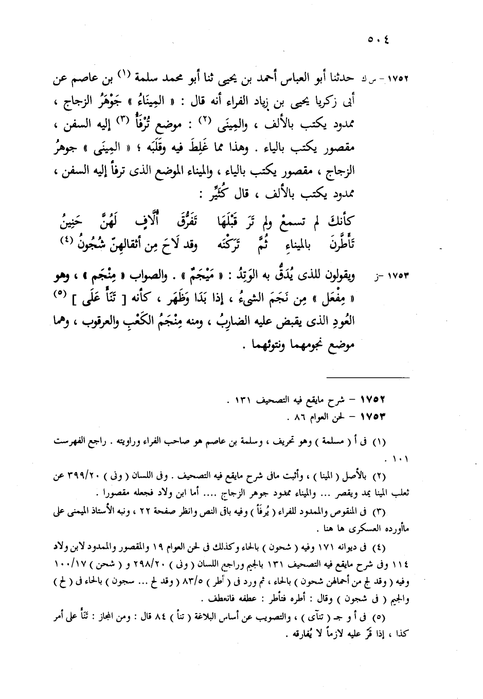 فقال أبو محلم: صحف، والله، ابن الأعرابي، وإنما هو وقاء شاتهم القروع.