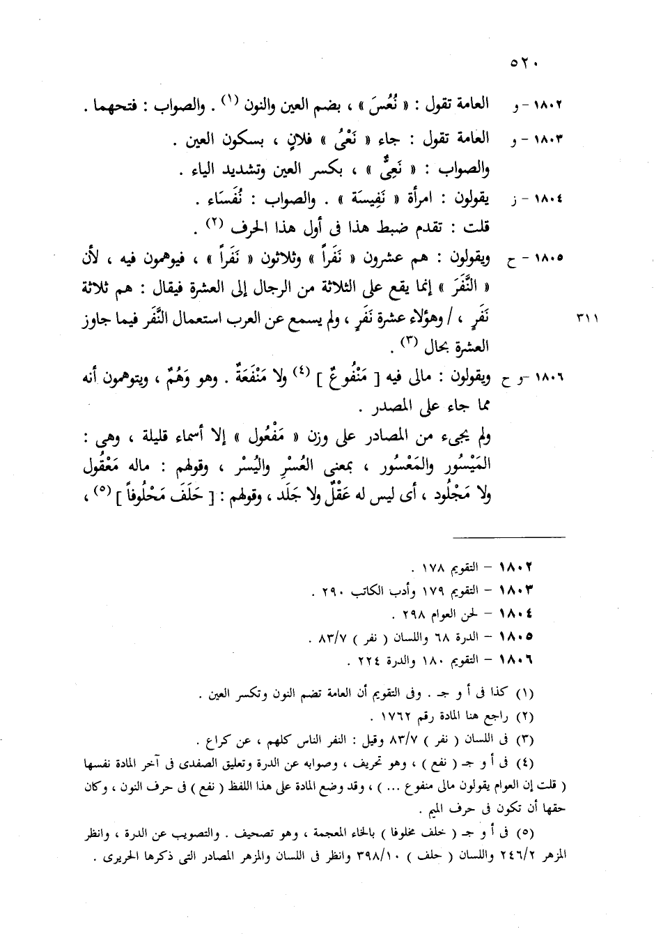 (و) العامة تقول: فلان يَضِنُّ بكذا. والصواب يَضَنُّ، بفتح الضاد.