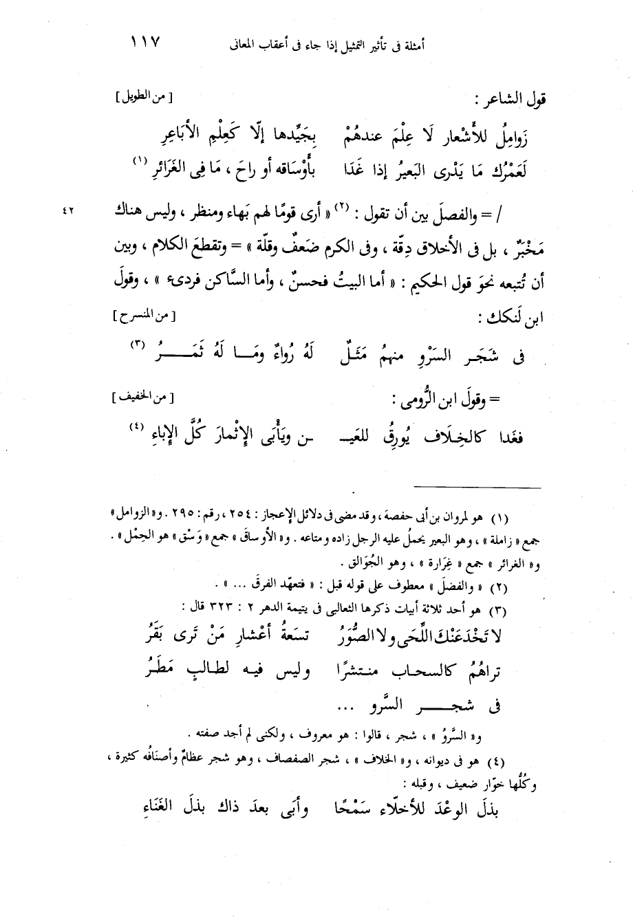 وانظر إلى المعنى في الحالة الثانية كيف يُورق شجَرهُ ويُثمر، ويفترُّ ثغرُه ويبسِم، وكيف تَشْتار الأرْيَ من مذاقته، كما ترى الحسن في شارته، وأنشِدْ قولَ ابن لنكك: