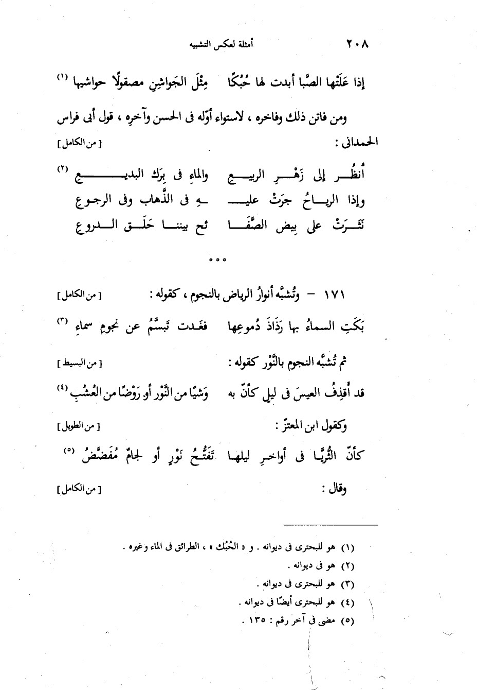 ومن فاتن ذلك وفاخره، لاستواء أوّله في الحسن وآخره، قول أبي فراس الحمداني: