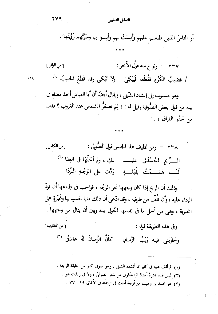 وهو منسوب إلى إنشاد الشّبلي، ويقال أيضاً أن أبا العباس أخذ معناه في بيته من قول بعض الصُّوفية وقيل له: لِمَ تصفرُّ الشمس عند الغروب؛ فقال من حَذَر الفراق، ومن لطيف هذا الجنس قول الصُّولي: