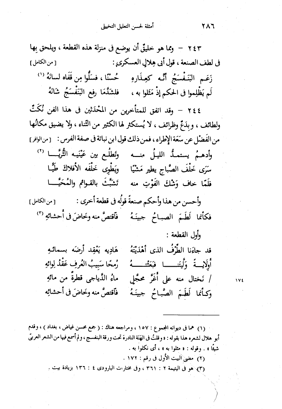 ومما هو خليقٌ أن يوضع في منزلة هذه القطع، ويلحق بها في لطف الصنعة، قول أبي هِلالٍ العسكري: