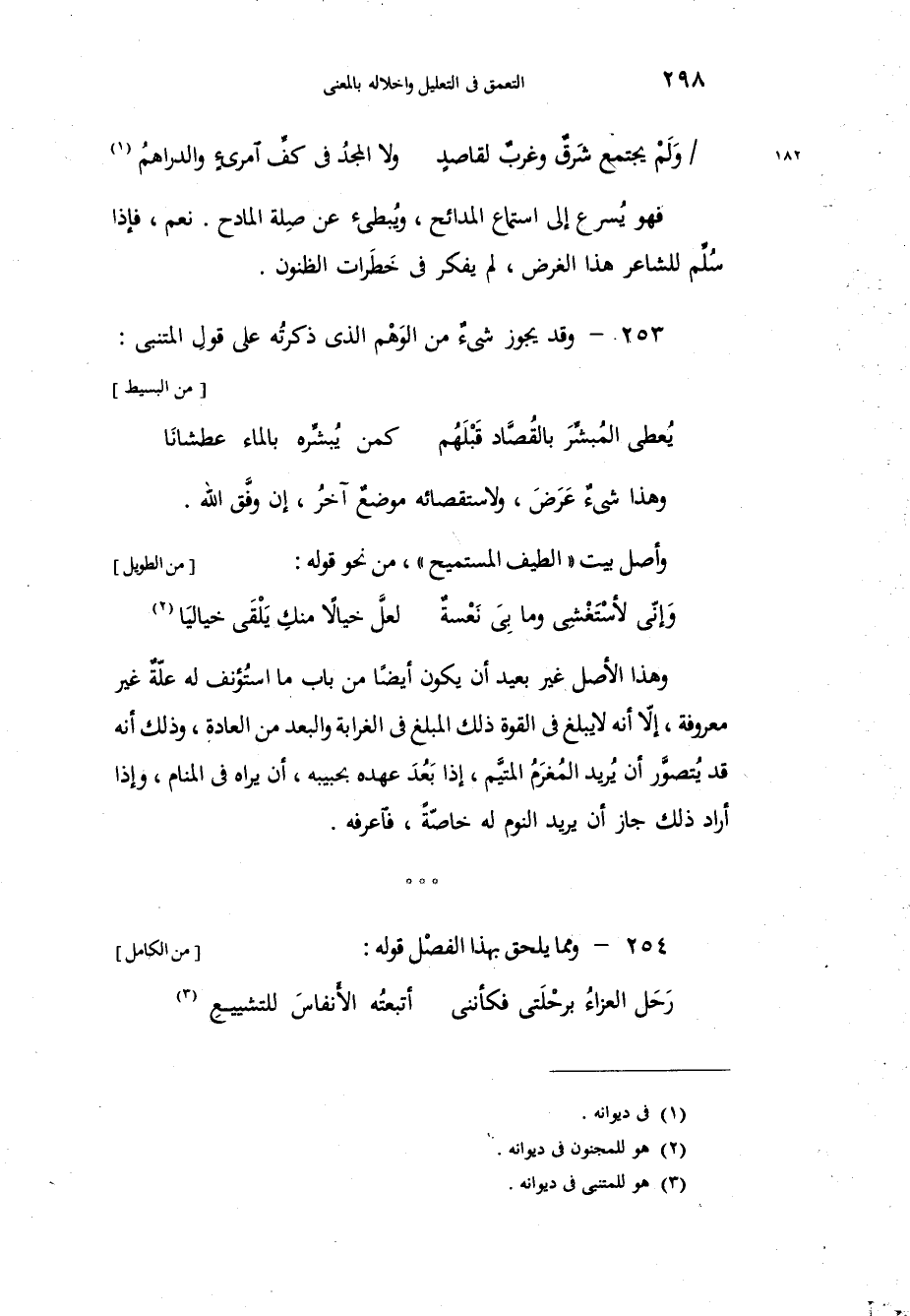 فهو يُسرع إلى استماع المدائح، ويُبطئ عن صِلة المادح، نعم، فإذا سُلِّم للشاعر هذا الغرض، لم يفكر في خَطَرات الظنون. وقد يجوز شيءٌ من الوَهْم الذي ذكرتُه على قولِ المتنبي: