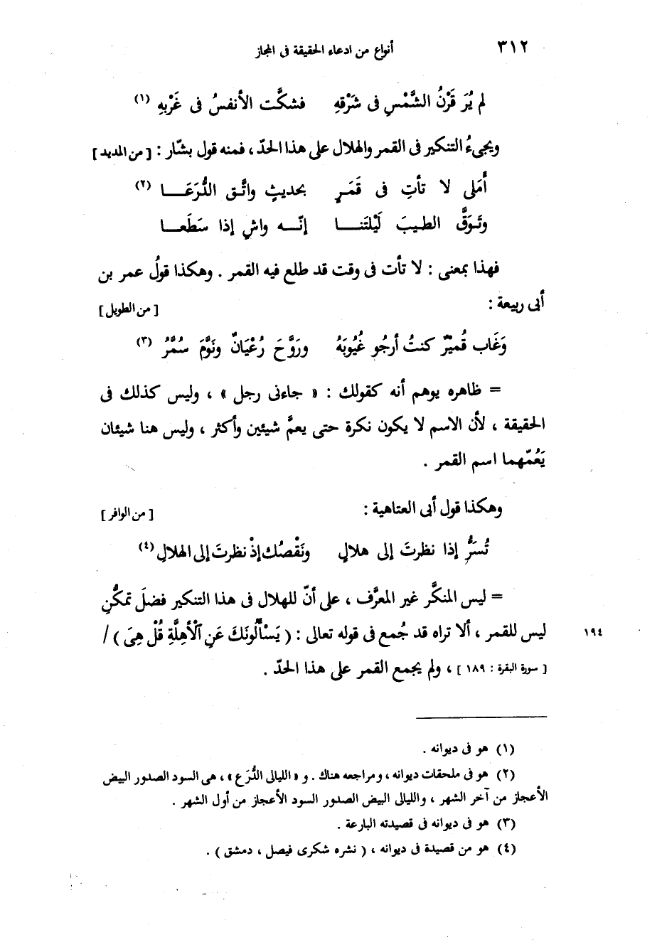 ليس المنكَّر غير المعرَّف، على أنّ للهلال في هذا التنكير فضلَ تمكُّنٍ ليس للقمر، ألا تراه قد جُمع في قوله تعالى: " يَسْأَلُونَكَ عَنِ الأَهِلَّةِ قُلْ هِيَ " " البقرة: 189 "، ولم يجمع القمر على هذا الحدّ.