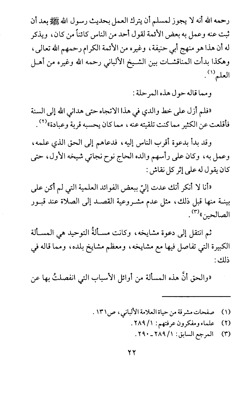 " والحق أنَّ هذه المسألة من أوائل الأسباب التي انفصلتُ بها عن