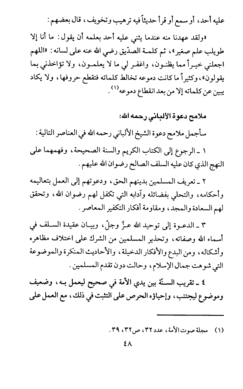 سأجمل ملامح دعوة الشيخ الألباني رحمه الله في العناصر التالية: