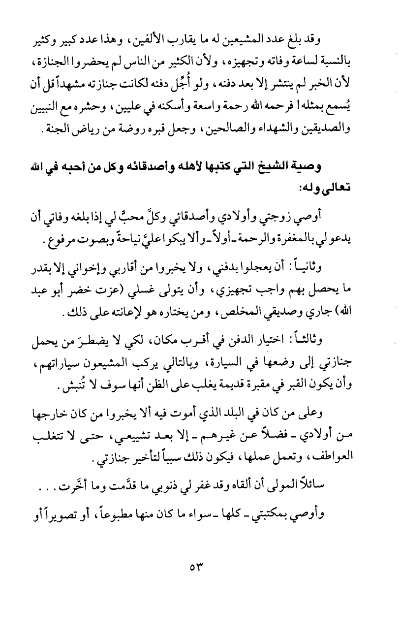أوصي زوجتي وأولادي وأصدقائي وكلَ محبّ لي إذا بلغه وفاتي أ ن