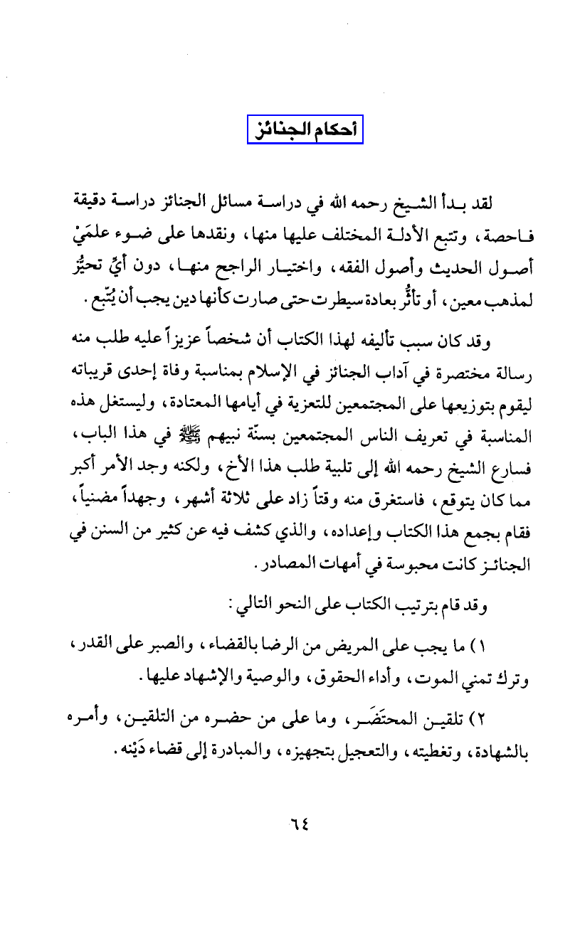 لقد بدا الشيخ رحمه الله في دراسة مسائل الجنائز دراسة دقيقة