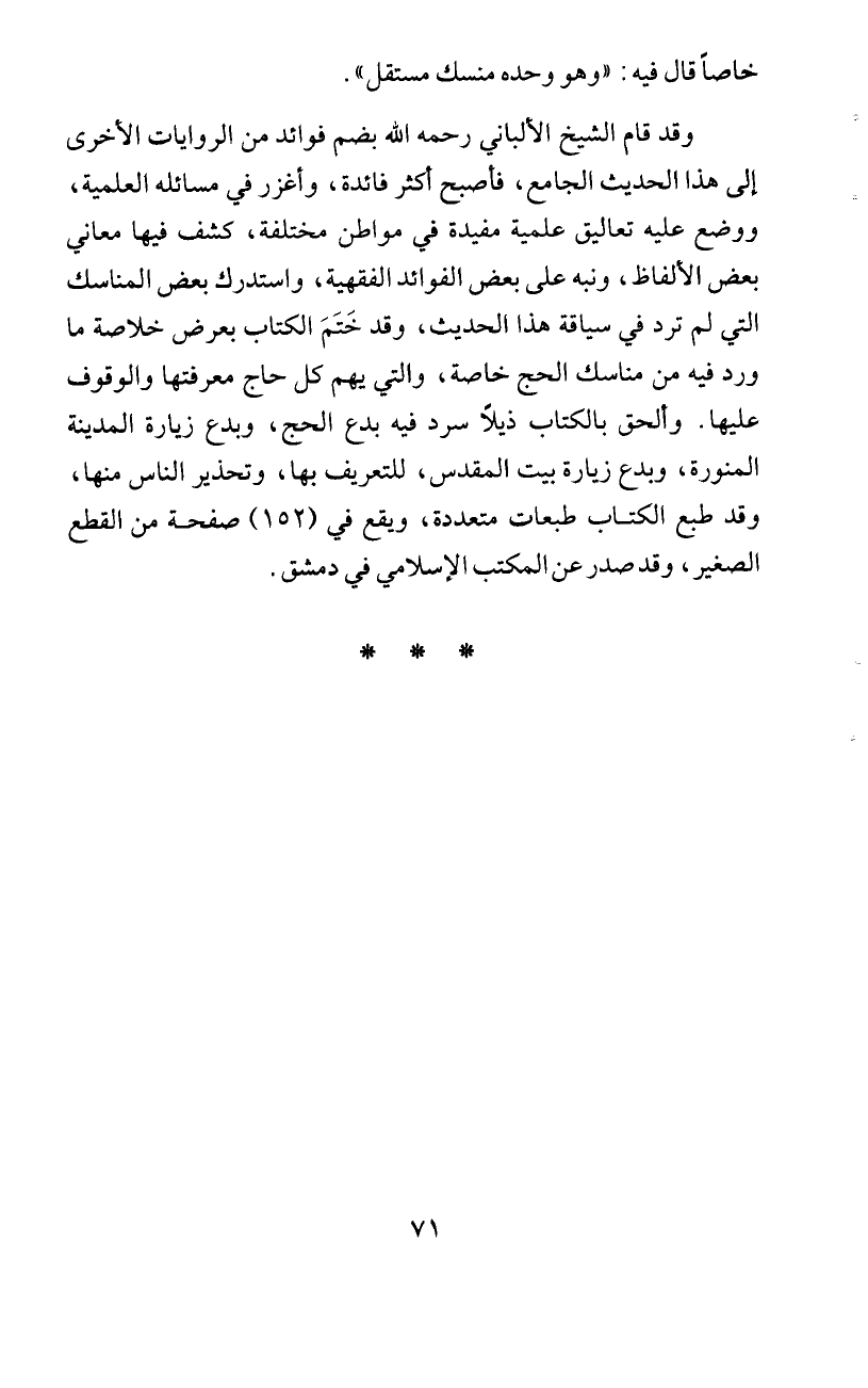 خاصأ قال فيه: " وهو وحده منسك مستقل ".