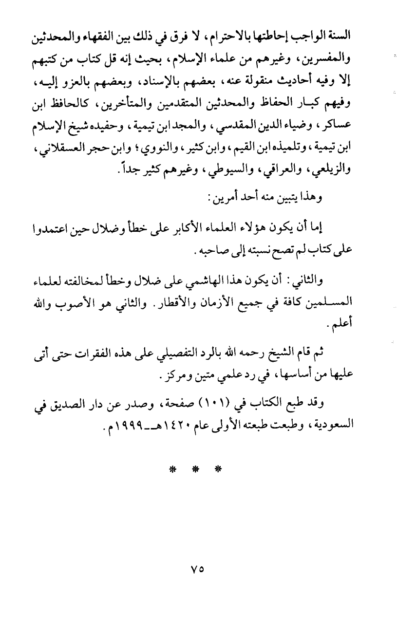 والثاني: أن يكون هذا الهاشمي على ضلال وخطأ لمخالفته لعلماء