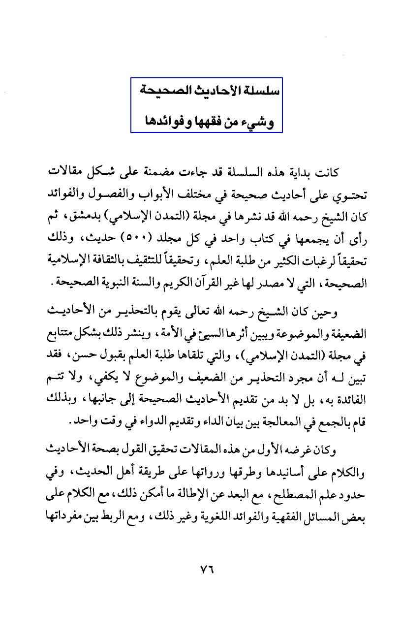 الضعيفة والموضوعة ويبين أثرها السعئ في ا لأمة، وينشر ذلك بشكل متتابع