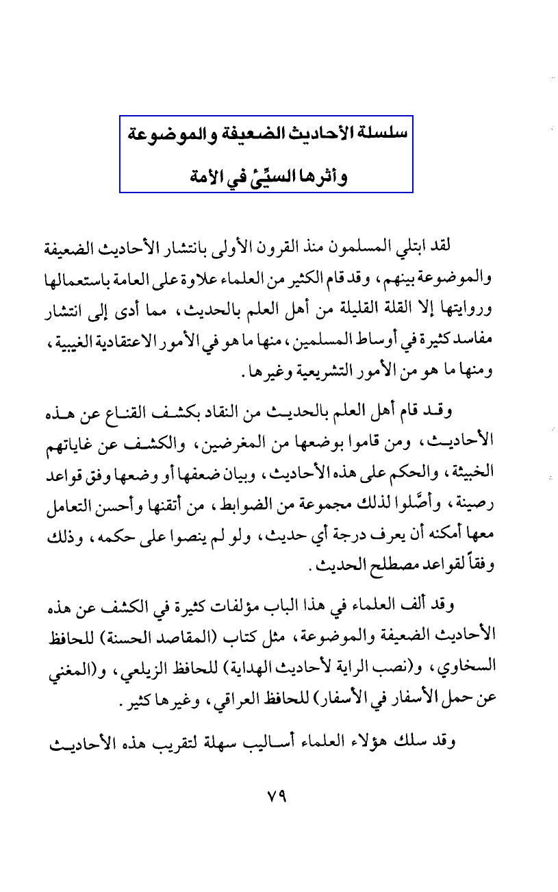 لقد ابتلي المسلمون منذ القرون الاولى بانتشار الاحاديث الضعيفة