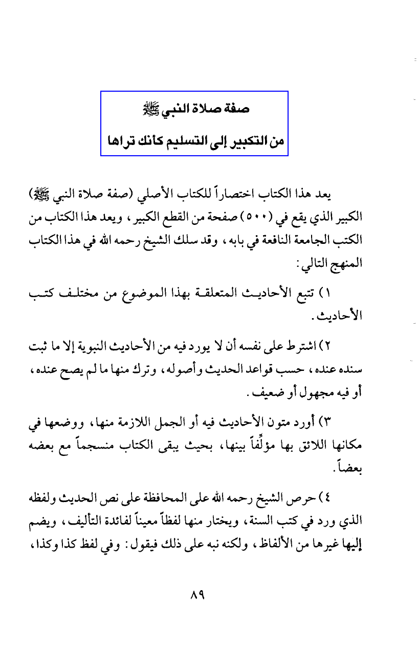 يعد هذا الكتاب اختصاراَ للكتاب الأصلي (صفة صلاة النبي لمجتَ)