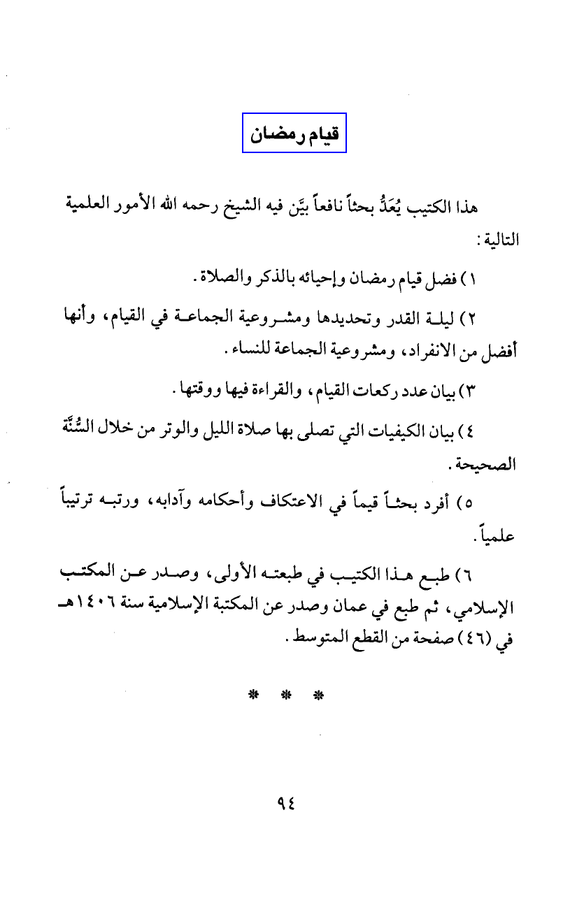 ا) فضل قيام رمضان وإحيائه بالذكر والصلاة.