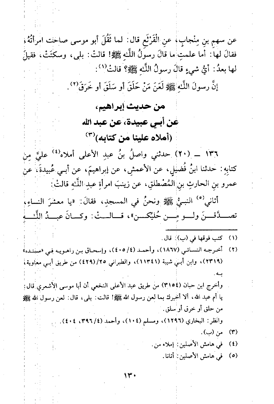 من حديث إبراهيم، عن أبي عبيدة، عن عبد الله [أملاه علينا من كتابه]