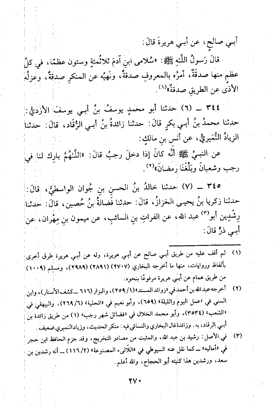344 - (6) حَدَّثَنَا أَبُو مُحَمَّدٍ يُوسُفُ بْنُ أَبِي يُوسُفَ الأَزْدِيُّ: حَدَّثَنَا مُحَمَّدُ بْنُ أَبِي بَكْرٍ قَالَ: حَدَّثَنَا زَائِدَةُ بْنُ أَبِي الرُّقَادِ، قَالَ: حَدَّثَنَا الزِّيَادُ النُّمَيْرِيُّ، عَنْ أَنَسِ بْنِ مَالِكٍ: عَنِ النَّبِيِّ صَلَّى اللَّهُ عَلَيْهِ وَسَلَّمَ أَنَّهُ كَانَ إِذَا دَخَلَ رَجَبٌ قَالَ: اللَّهُمَّ بَارِكْ لَنَا فِي رَجَبٍ وَشَعْبَانَ وَبَلِّغْنَا رَمَضَانَ.