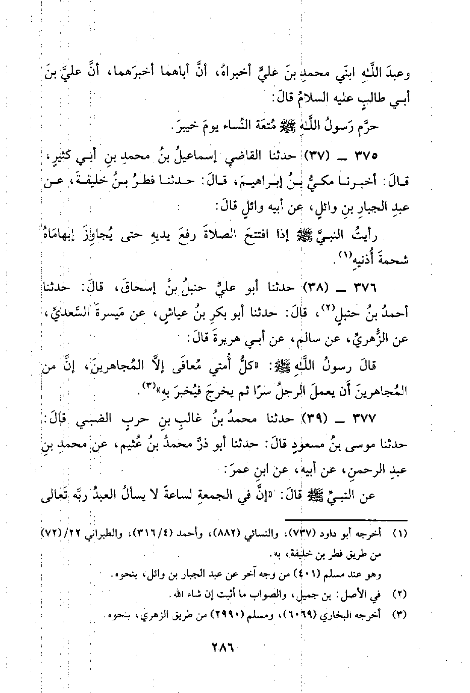 376 - (38) حَدَّثَنَا أَبُو عَلِيٍّ حَنْبَلُ بْنُ إِسْحَاقَ، قَالَ: حدثنا أحمد بن حميد، قال: حدثنا أبو بكر بن عياش، عن مَيْسَرَةَ السَّعْدِيِّ، عَنِ الزُّهْرِيِّ، عَنْ سَالِمٍ، عَنِ أبي هريرة قال: قال رسول الله صلى اللَّهُ عَلَيْهِ وَسَلَّمَ: كُلُّ أُمَّتِي مُعَافَى إِلا الْمُجَاهِرِينَ، إِنَّ مِنَ الْمُجَاهِرِينَ أَنْ يَعْمَلَ الرَّجُلُ سِرًّا ثُمَّ يَخْرُجُ فَيُخْبِرُ بِهِ.