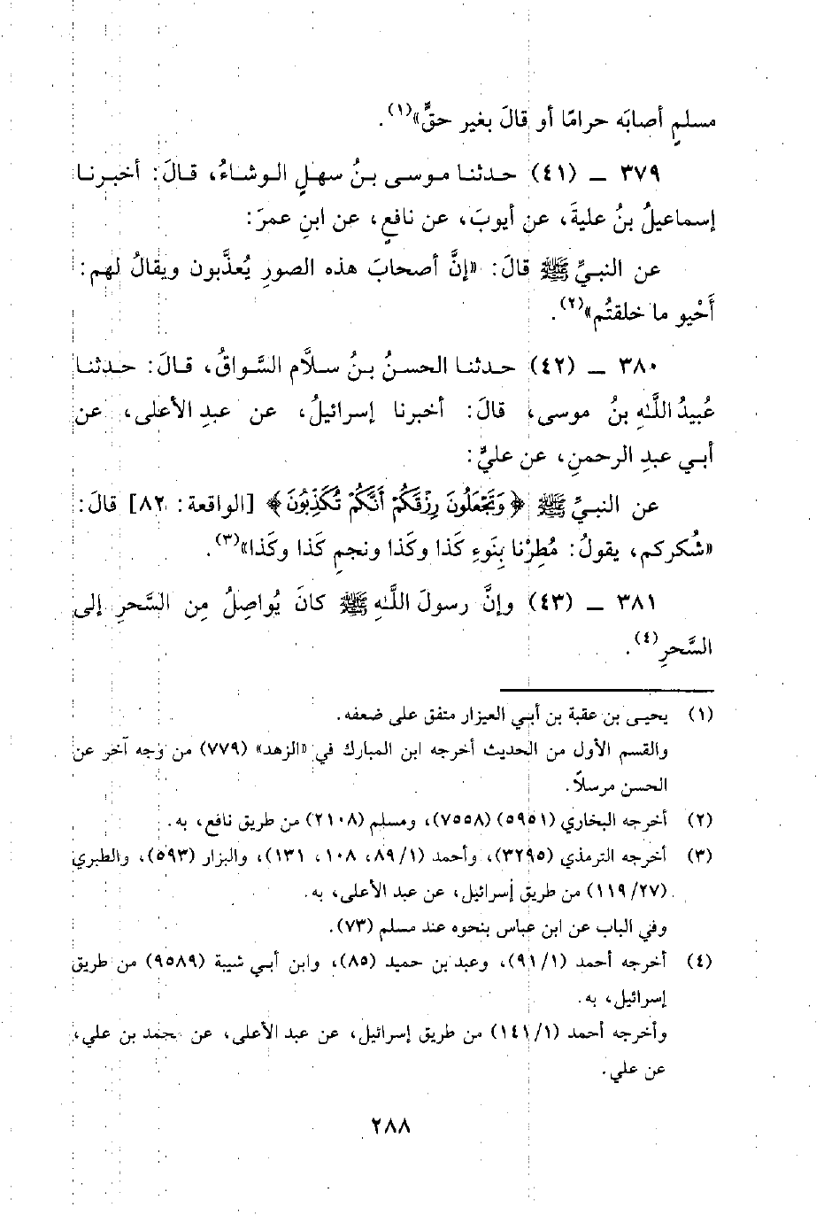 379 - (41) حَدَّثَنَا مُوسَى بْنُ سَهْلٍ الْوَشَّاءُ، قَالَ: أَخْبَرَنَا إِسْمَاعِيلُ بْنُ عُلَيَّةَ، عَنْ أَيُّوبَ، عَنْ نَافِعٍ، عَنْ ابْنِ عُمَرَ: عَنِ النَّبِيِّ صَلَّى اللَّهُ عَلَيْهِ وَسَلَّمَ قَالَ: إِنَّ أَصْحَابَ هَذِهِ الصُّوَرِ يعذبون ويقال لهم: أحيو مَا خَلَقْتُمْ.