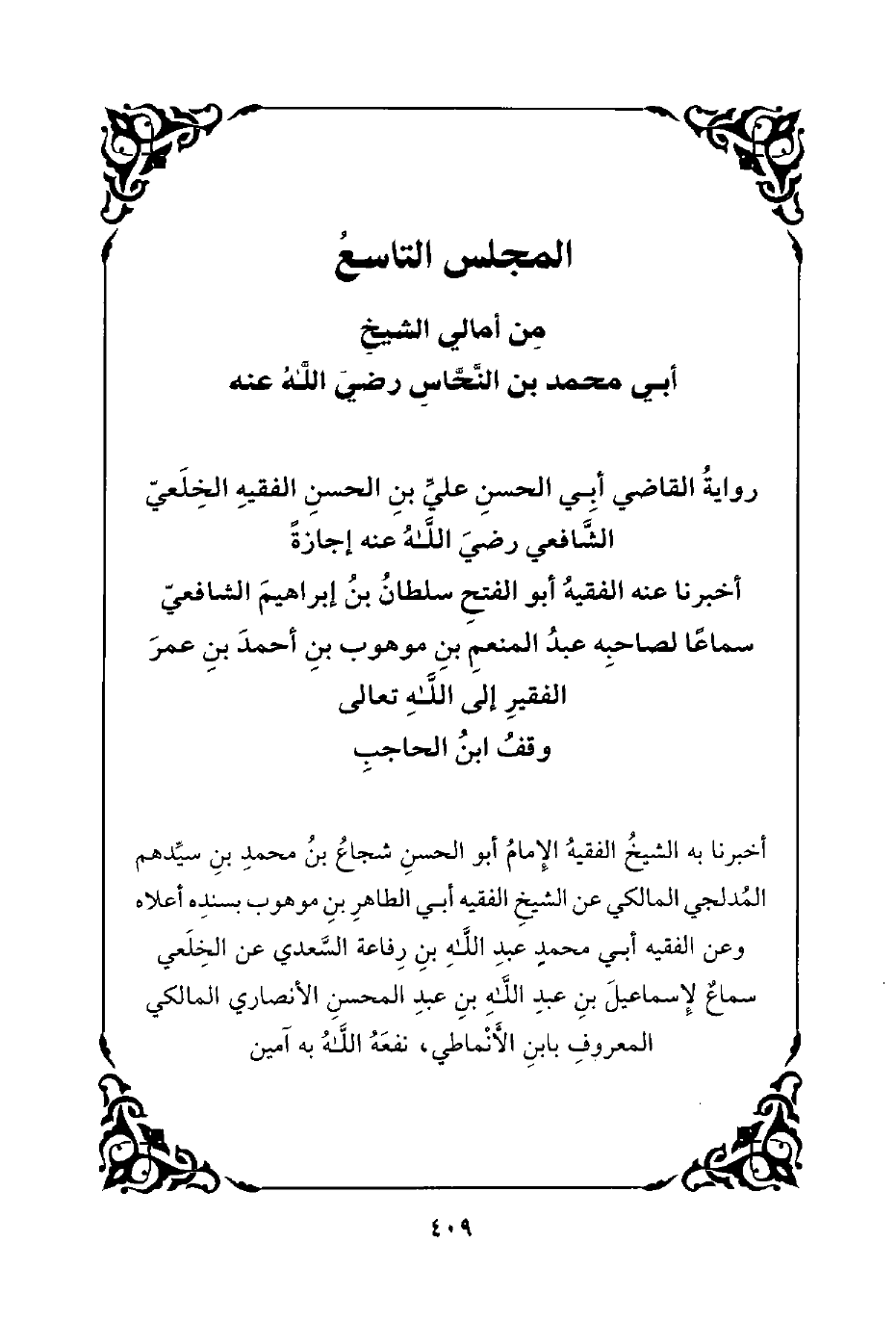 المجلس التاسع من أمالي الشيخ أبي محمد بن النحاس رضي الله عنه