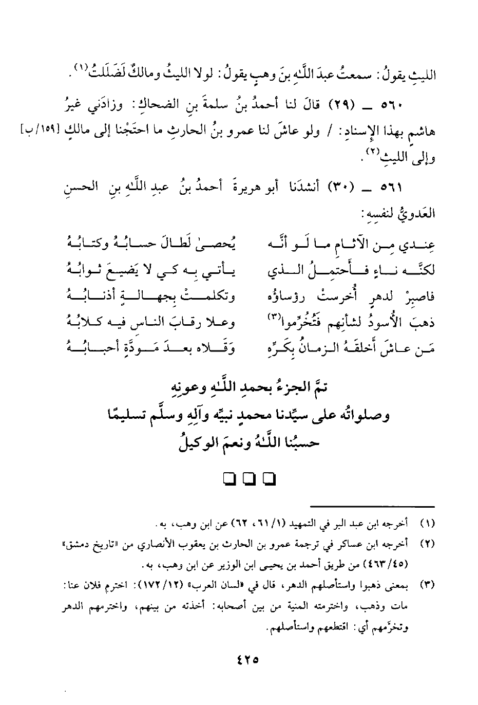 560 - (29) قَالَ لَنَا أَحْمَدُ بْنُ سَلَمَةَ بْنِ الضَّحَّاكِ: وَزَادَنِي غَيْرُ هَاشِمٍ بِهَذَا الإِسْنَادِ: / وَلَوْ عَاشَ لَنَا عَمْرُو بْنُ الْحَارِثِ مَا احْتَجْنَا إِلَى مَالِكٍ وَإِلَى اللَّيْثِ.