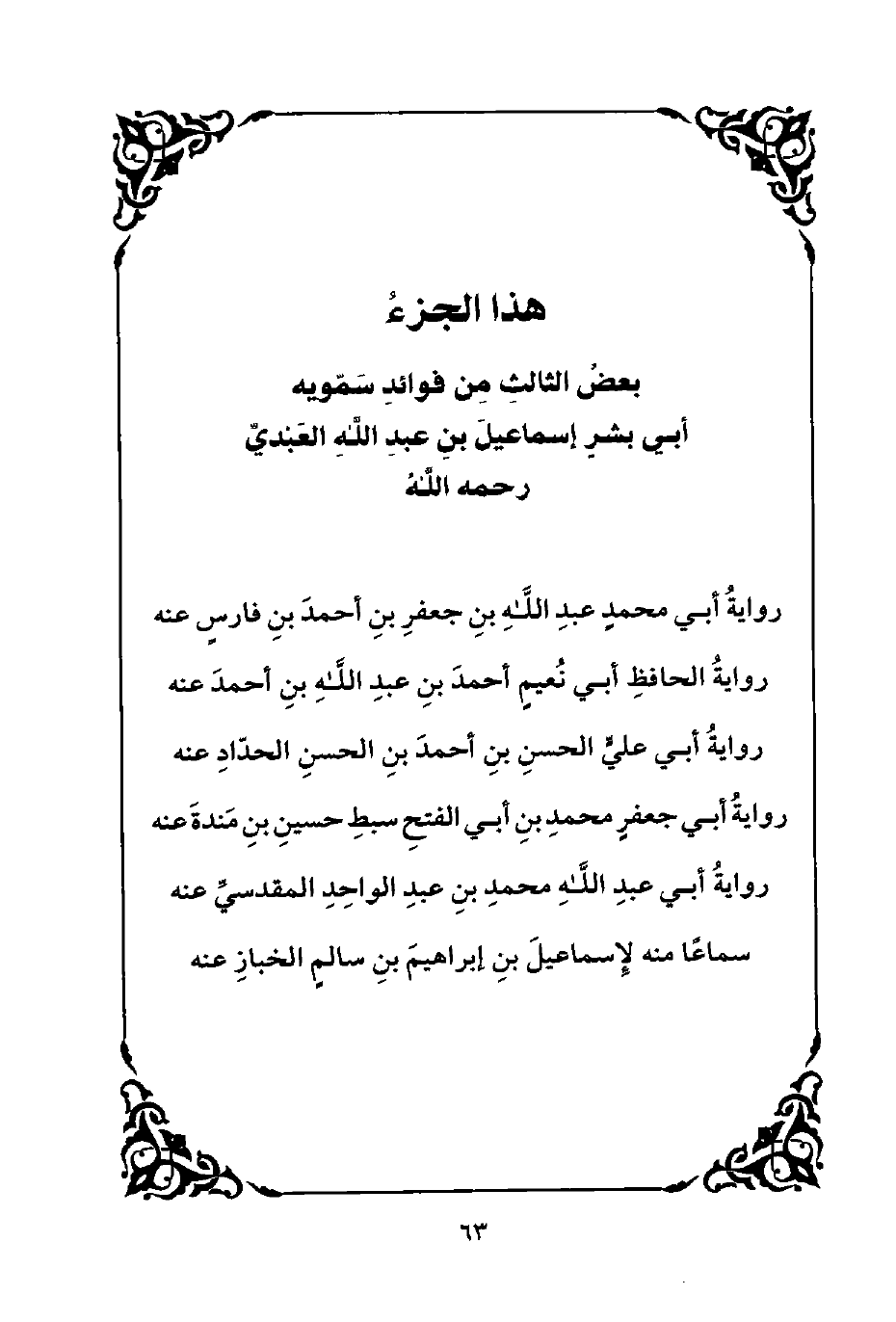 هذا الجزء بعض الثالث من فوائد سمويه أبي بشر إسماعيل بن عبد الله العبدي رحمه الله