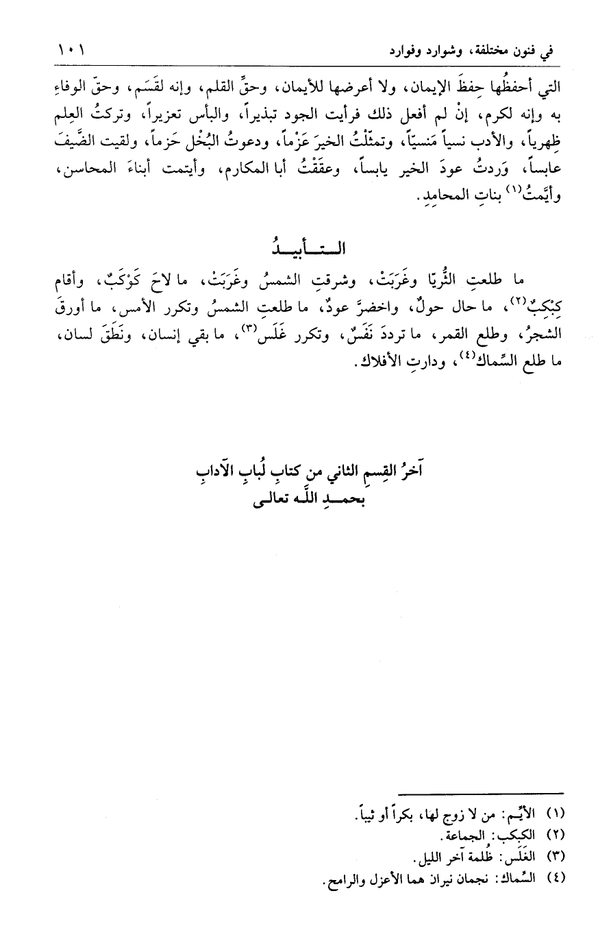 اَخرُ القِسمِ الثاني من كتابِ لُبابِ الآدابِ بحمدِ اللَه تعالى