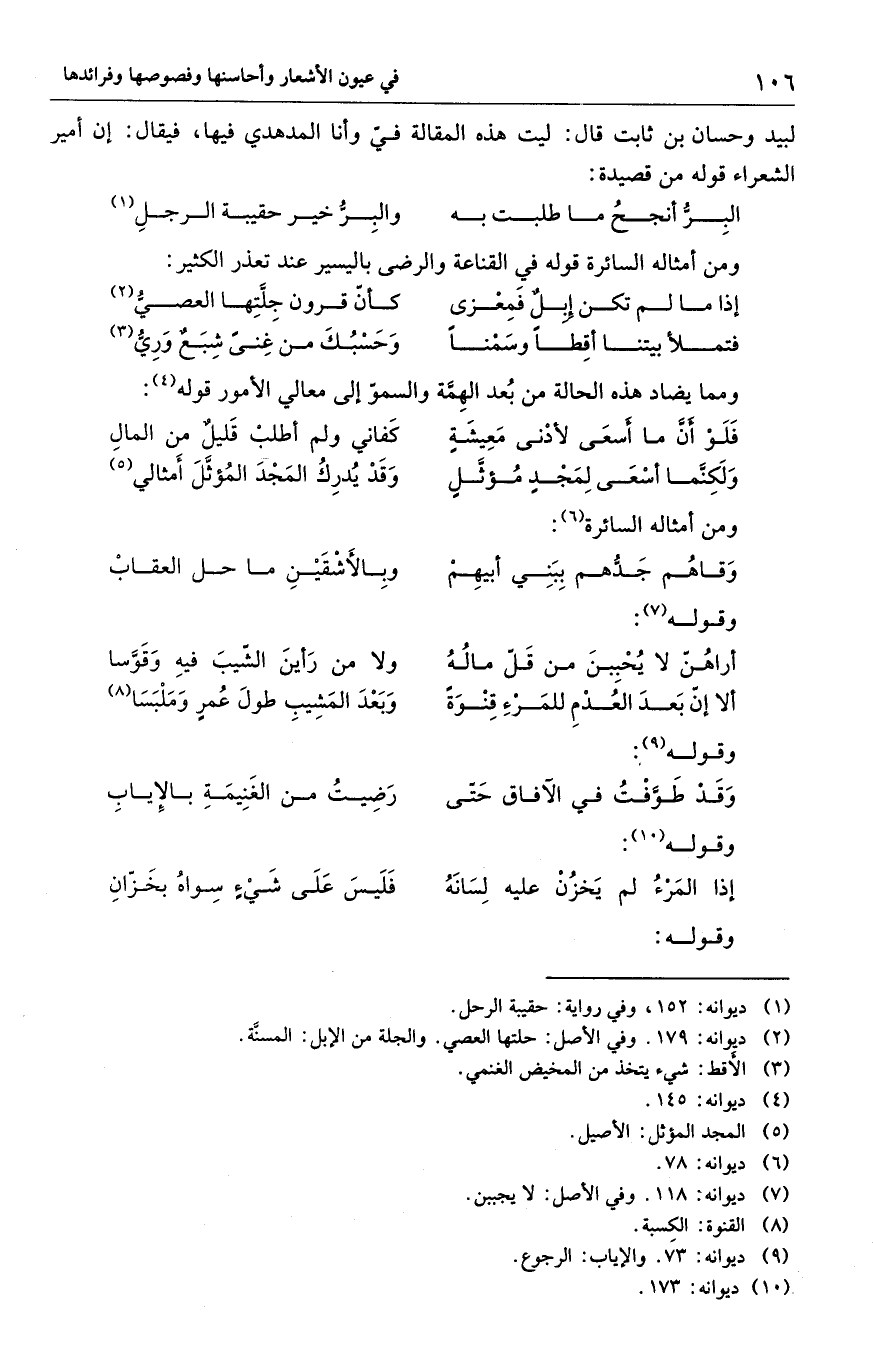 لبيد وحسان بن ثابت قال: ليت هذه المقالة فيّ وأنا المدهدي فيها، فيقال: إن أمير الشعراء قوله من قصيدة:
