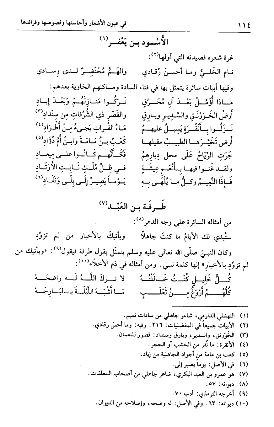 وكان النبيّ صلّى الله تعالى عليه وسلم يتمثل بقول طرفة فيقول: " ويأتيك من لم تزوِّدِ بالأخبارِ " إنها كلمة نبي. ومن أمثاله في ذم الأخلاّء: