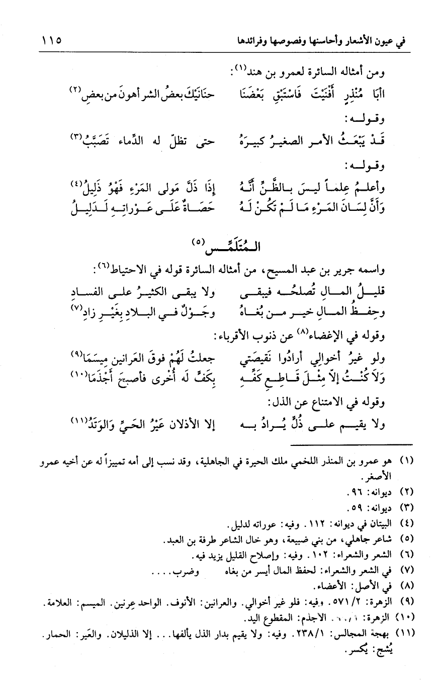 اأبَا مُنْذِرٍ أَفْنَيْتَ فَاسْتَبْقِ بَعْضَنَا ... حنَانَيْكَ بعضُ الشر أهونَ من بعضِ