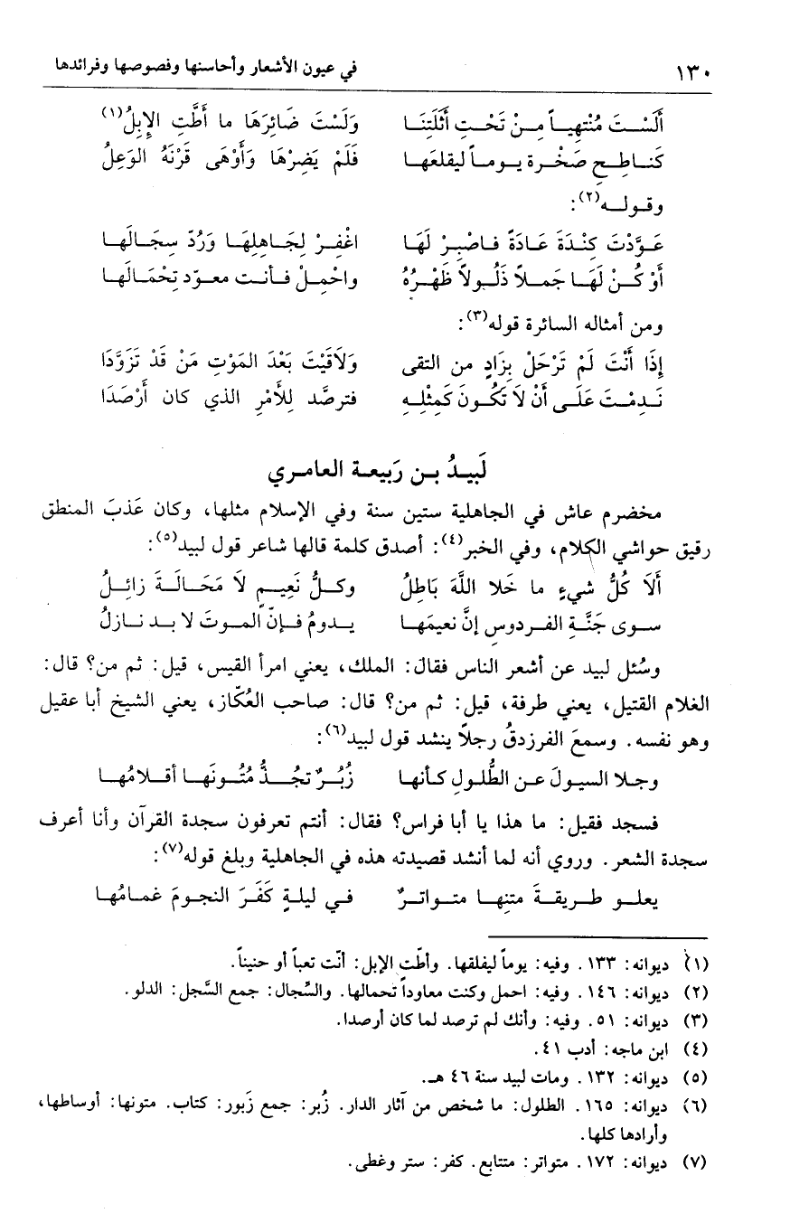 مخضرم عاش في الجاهلية ستين سنة وفي الإسلام مثلها، وكان عَذبَ المنطق رقيق حواشي الكلام، وفي الخبر: أصدق كلمة قالها شاعر قول لبيد: