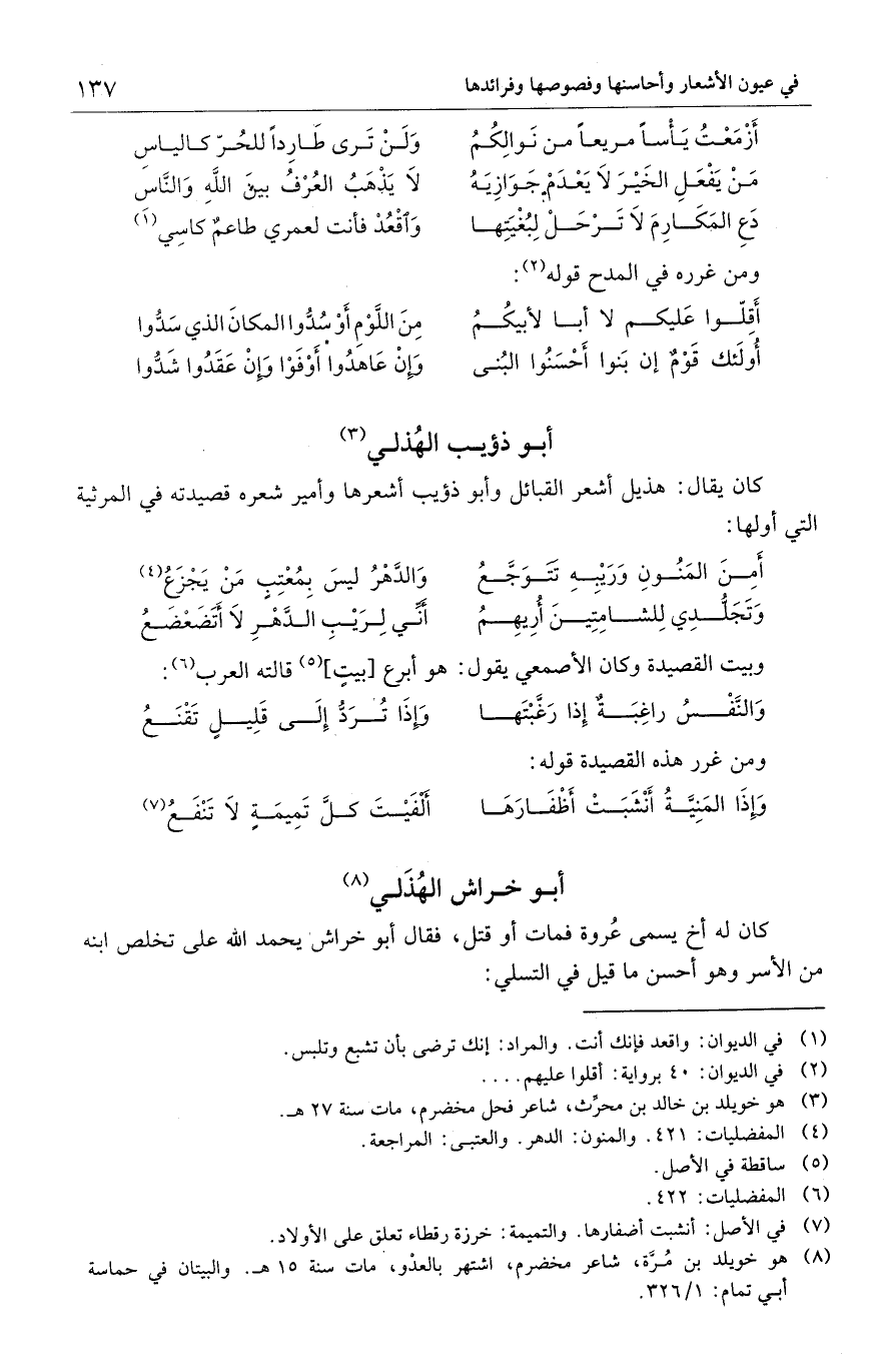 كان يقال: هذيل أشعر القبائل وأبو ذؤيب أشعرها وأمير شعره قصيدته في المرثية التي أولها: