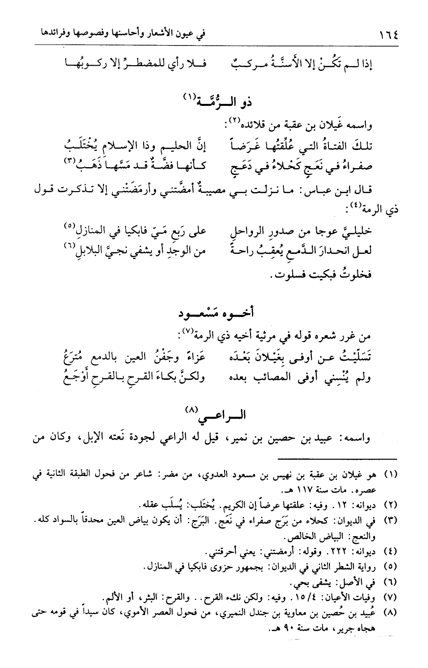 قال ابن عباس: ما نزلت بي مصيبةٌ أمضتني وأرمَضَتْني إلا تذكرت قول ذي الرمة: