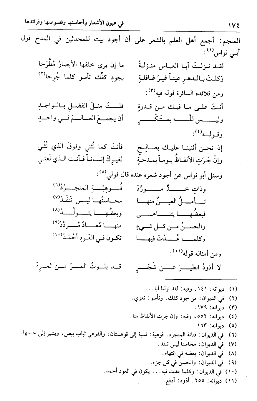 المنجم: أجمع أهل العلم بالشعر على أن أجود بيت للمحدثين في المدح قول أبي نواس: