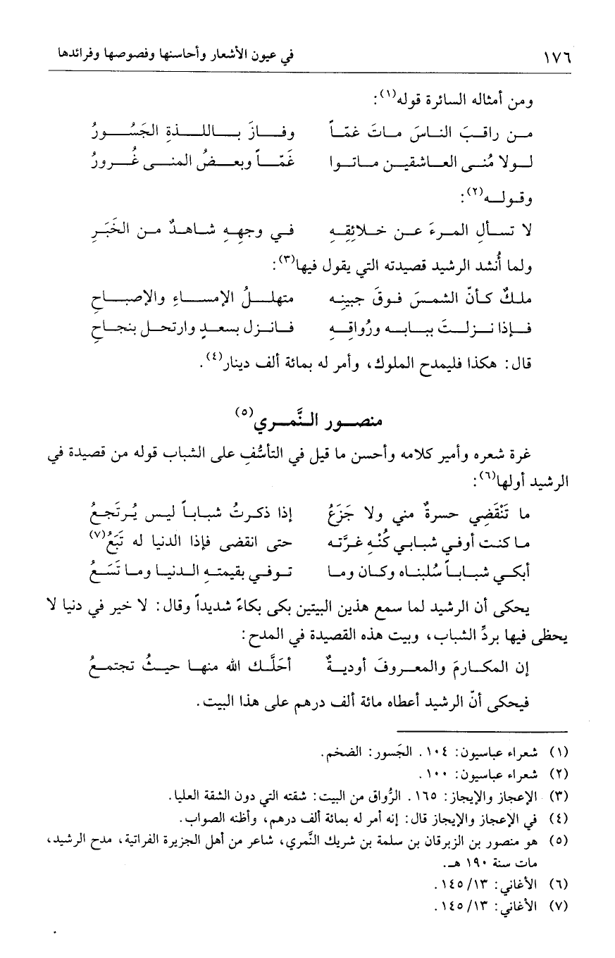 غرة شعره وأمير كلامه وأحسن ما قيل في التأسُّفِ على الشباب قوله من قصيدة في الرشيد أولها: