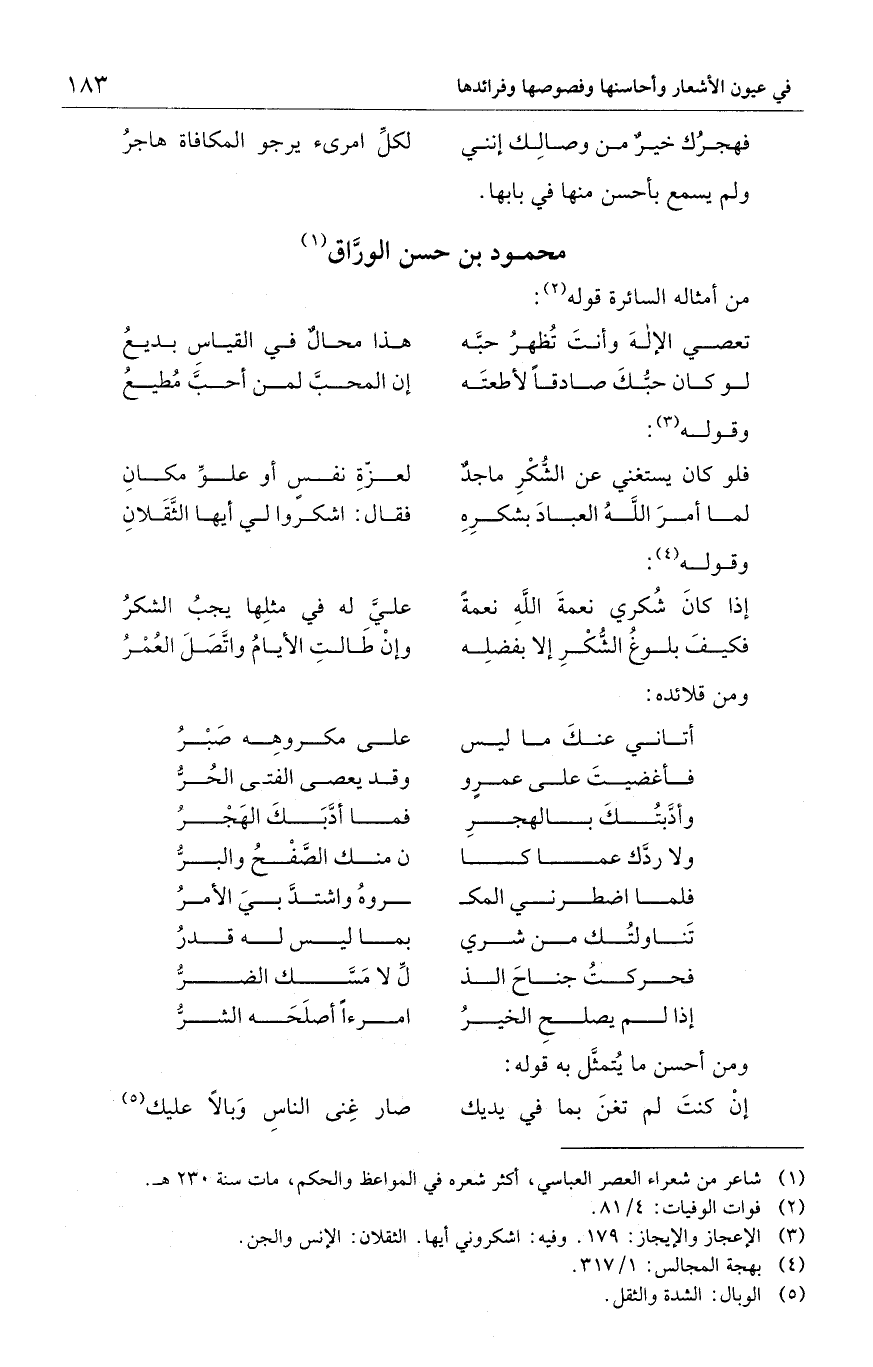 إذا كانَ شُكري نعمةَ اللَّهِ نعمةً ... عليَّ له في مثلِها يجبُ الشكرَ