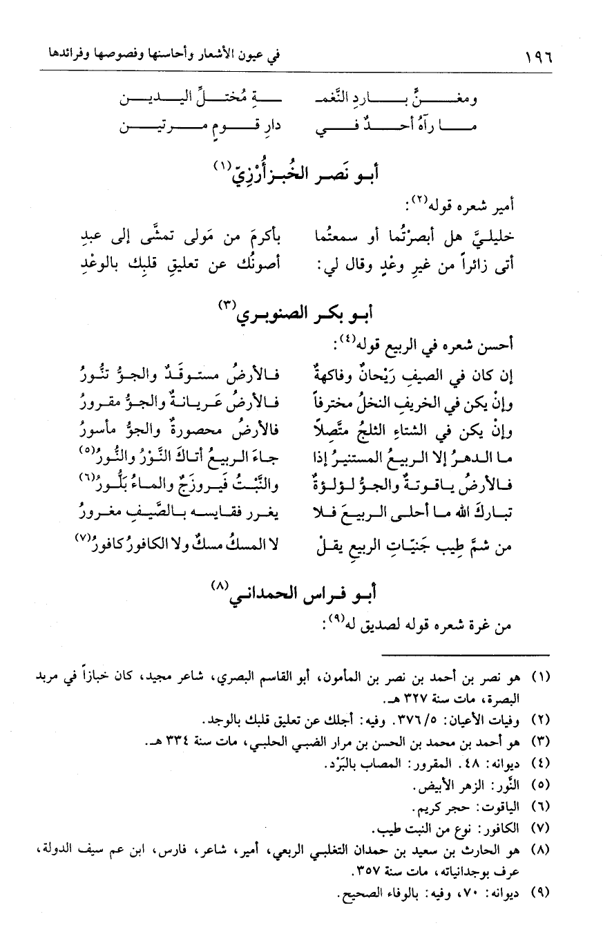 فالأرضُ ياقوتةٌ والجوُّ لؤلؤةٌ ... والنَبْتُ فيروزَجٌ والماءُ بَلُورُ