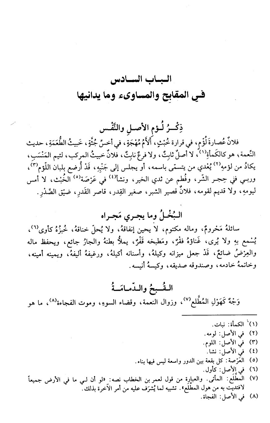 ذكْرُ لُؤم الأصلِ والنَّفْس